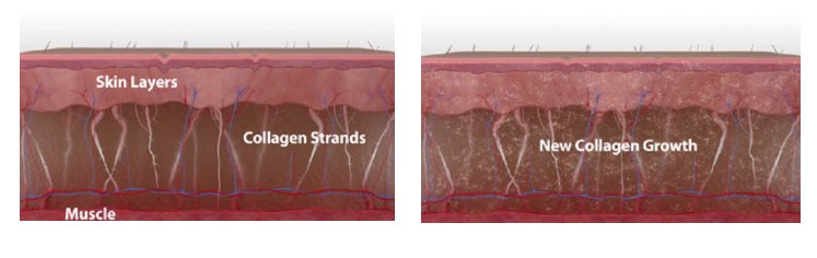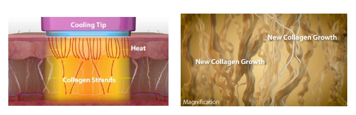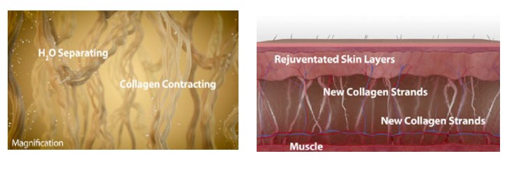พลังงานความร้อนที่ส่งผ่านเข้าไปจะแยกโมเลกุลของน้ำออกจากคอลลาเจนไฟบริน เป็นสาเหตุให้คอลลาเจนหดตัวทันที ส่งผลให้ผิวมีความกระชับขึ้น
