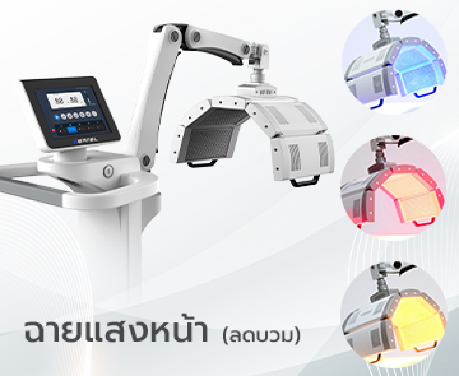 โดยเเสงเเต่ละสีจะทำหน้าที่ต่างกันเพื่อลดปัญหาผิวในแต่ละประเภท และเพื่อการรักษาที่มีประสิทธิภาพเครื่องสามารถตั้งโปรเเกรมอัตโนมัติเพื่อการรักษาที่ตรงจุด